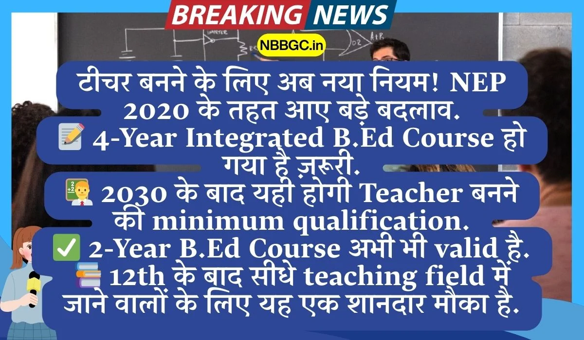B.Ed New Rule Bihar :Teacher बनने का सोच रहे हमारे नौजवानों के लिए एक ज़रूरी खबर आई है. सरकार ने teachers की eligibility को लेकर कुछ नए rules बनाए हैं, जो National Education Policy 2020 के तहत हैं. अब Teacher बनने के लिए सिर्फ B.Ed की डिग्री ही काफी नहीं होगी. एक नए तरह का कोर्स आ रहा है, जिसके बारे में जानना आपके लिए बहुत ज़रूरी है.