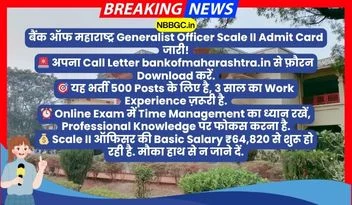 Bank of Maharashtra Admit Card : Bank of Maharashtra (BOM) ने Generalist Officer Scale II – Project 2025-26 की भर्ती के लिए अपना Admit Card निकाल दिया है. जिन लोगों ने इस पोस्ट के लिए Apply किया था, उनके लिए यह बहुत बड़ी खबर है. यह भर्ती कुल 500 Posts के लिए हो रही है, इसीलिए आपको अपनी तैयारी में अब ज़रा भी ढील नहीं देनी चाहिए. अब जब Call Letter आ ही गया है, तो इसका मतलब है कि Exam की तारीख एकदम करीब है. तैयारी को आखरी रूप देने के साथ-साथ सबसे पहला और ज़रूरी काम यह है कि आप अपना Admit Card download करके उसे Print करा लें. कभी-कभी last minute पर server down हो जाता है, इसलिए मैं यही कहूँगा कि आप जल्द से जल्द अपना Admit Card डाउनलोड कर लीजिए.