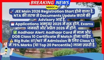 JEE Main 2026 Registration : IIT और NIT जैसे बड़े Engineering Colleges में जाने का ख़्वाब देखने वाले बच्चों के लिए एक बहुत ज़रूरी ख़बर आई है. National Testing Agency (NTA) ने JEE Main 2026 की तैयारी शुरू कर दी है और छात्रों को एक ख़ास Advisory (सलाह) भी दी है. का कहना है कि Online Application शुरू होने से पहले, आप अपने ज़रूरी Documents को करा लें, नहीं तो बाद में दिक्कत हो सकती है. अगले महीने अक्टूबर 2025 में शुरू होने वाली है.