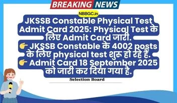 JKSSB Constable PET/PST Admit Card 2025: Jammu and Kashmir Services Selection Board (JKSSB) ने Constable recruitment 2025 के physical test के लिए एक ज़रूरी update दी है. Written exam में पास हुए candidates को अब Physical Standard Test (PST) और Physical Endurance Test (PET) देना होगा. इसके लिए admit card 18 September 2025 को जारी कर दिए गए हैं, और physical tests 24 September 2025 से शुरू हो रहे हैं.